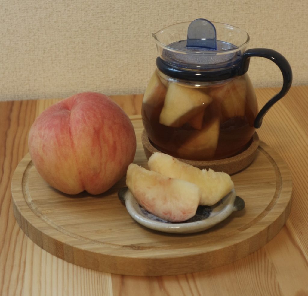 ⑤完成!桃の甘みが良くでた紅茶と、紅茶の風味がついた桃をお楽しみください。